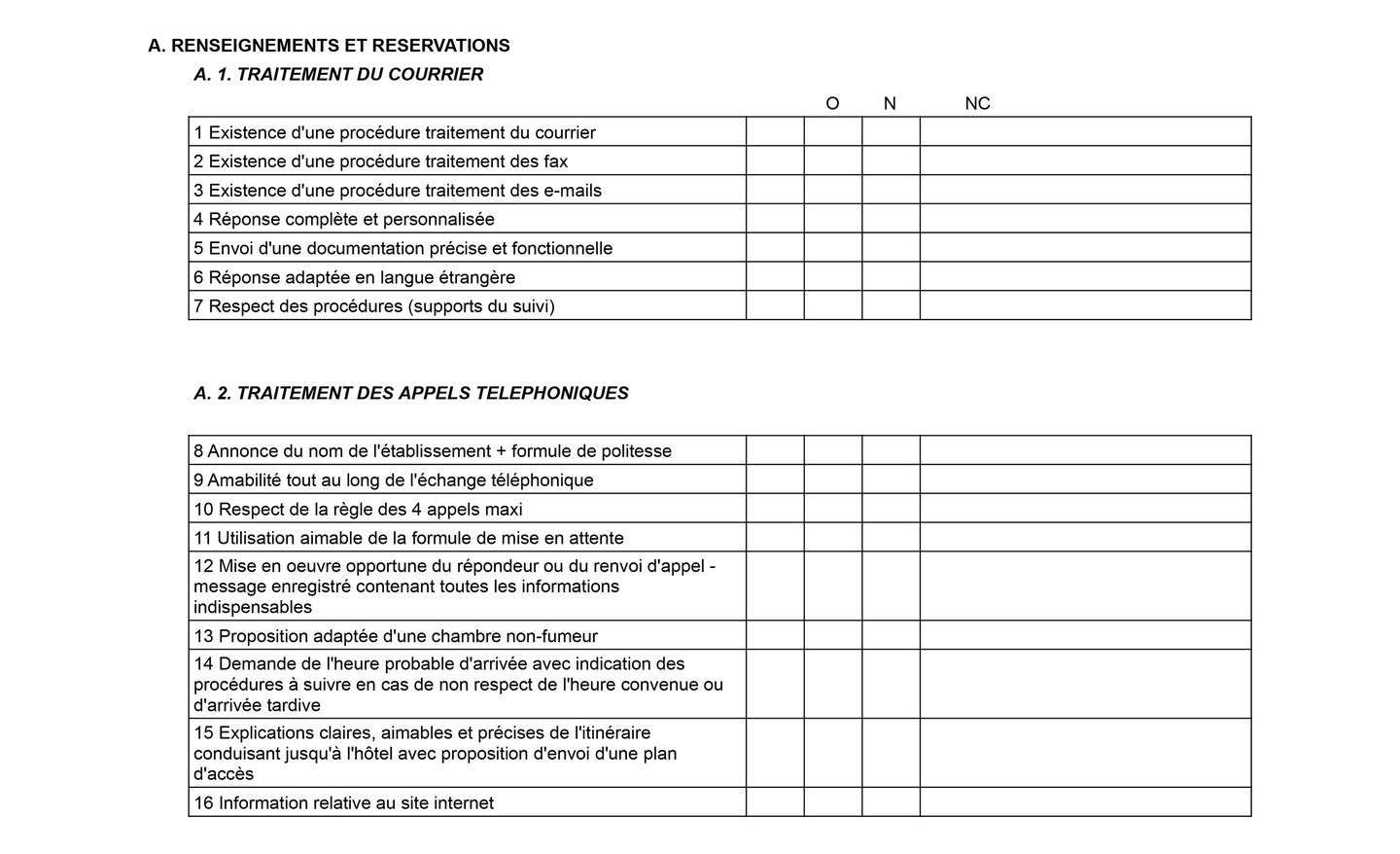 Un outil détaillé destiné à apprécier la qualité d'un hôtel